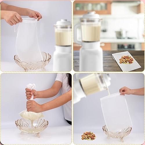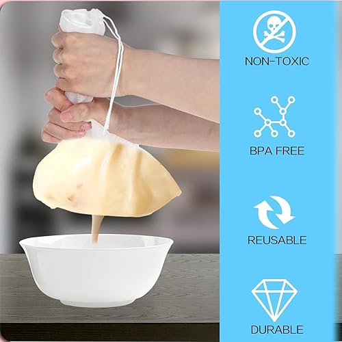 YUNYU Lot de 6 chiffons à fromage pour égoutter 20 x 30 cm – Sacs filtrants réutilisables en nylon de qualité alimentaire avec cordon de serrage, chiffons en mousseline pour la cuisine, sacs à lait de