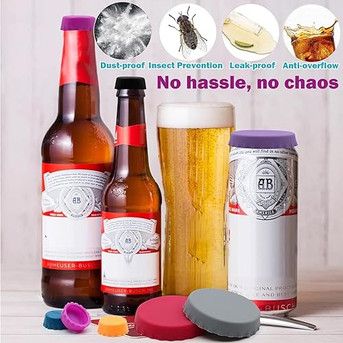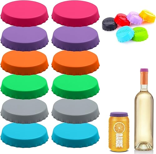 YanBous 12 couvercles de canettes en silicone et 12 bouchons de bouteilles en caoutchouc, Réutilisables, Multicolores, pour bière maison et boissons gazeuses