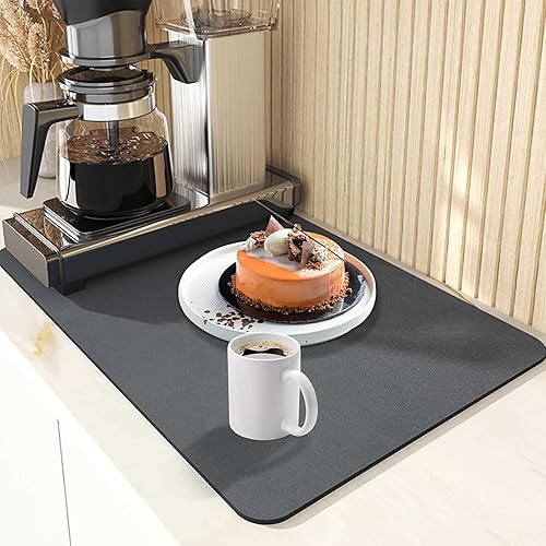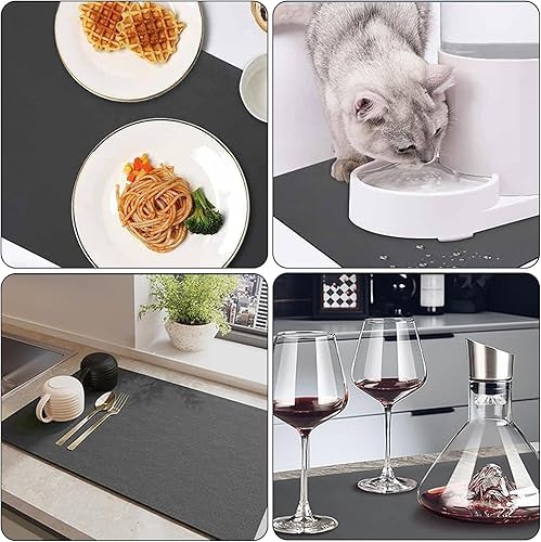 Tapis Egouttoir Vaisselle Absorbant, Tapis Egouttoir à Vaisselle 30 x 40 cm, Tapis Machine à Café, Tapis Absorbant, Tapis Gamelle pour Chien, Tapis Gamelle pour Chat, Gris