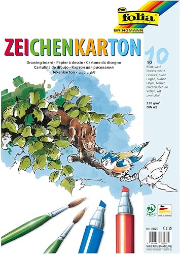 folia 8820 Lot de 10 Feuilles de Papier à Dessin 250 g/m² Blanc Format A2 pour de Nombreuses idées créatives
