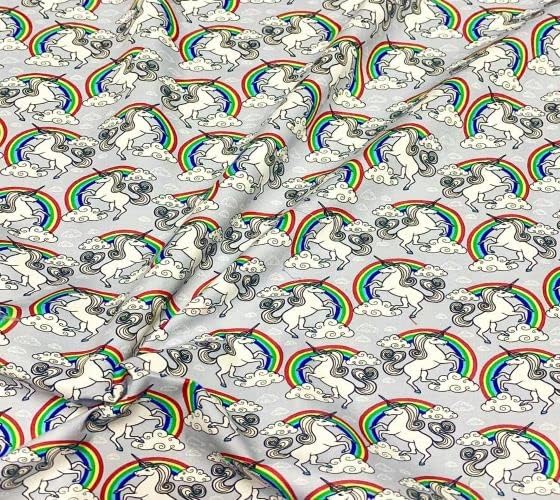 Rose et Hubble - Tissu 100 % Coton Popeline - Licorne et arc-en-ciel, Coton, 1 Metre Silver
