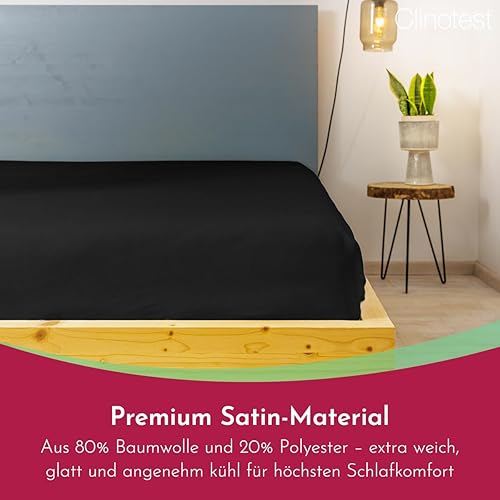 Clinotest Drap de lit en satin de 240 x 290 cm - Drap de lit lisse de qualité supérieure sans élastique - Doux et rafraîchissant en coton et microfibre - Facile d'entretien et respirant - Bleu marine