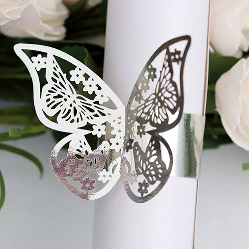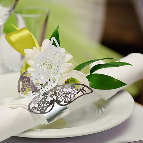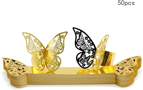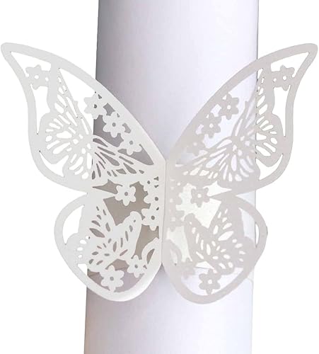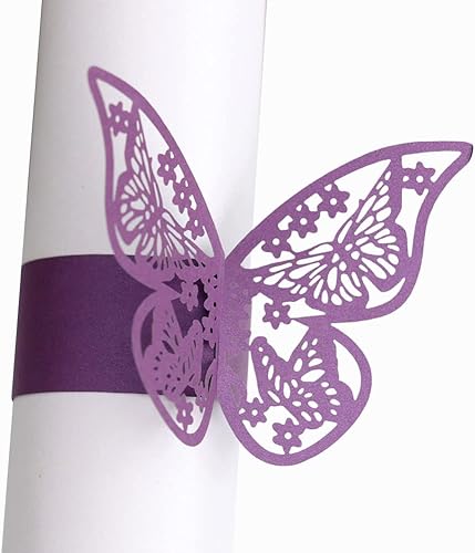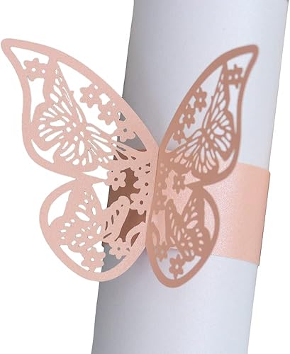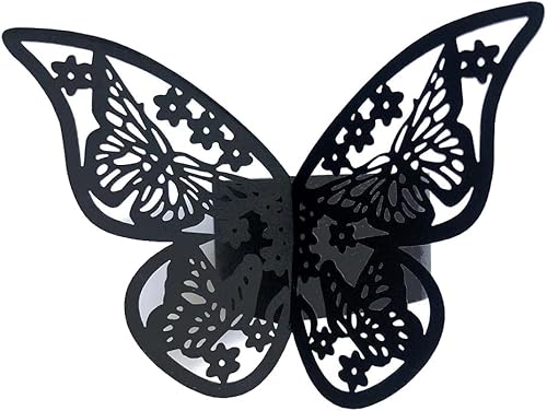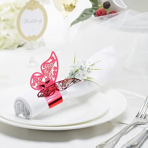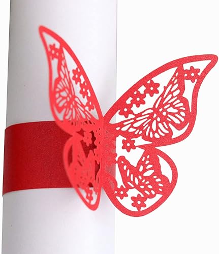 URFEDA 50pcs Rond de Serviette de Table 3D Papillon Découpe Laser Ronds de Serviette en Papier Porte-Serviettes Mariage pour Tables, Décorations, Mariage, Dîners, Décoration de Fête (Rouge 1)