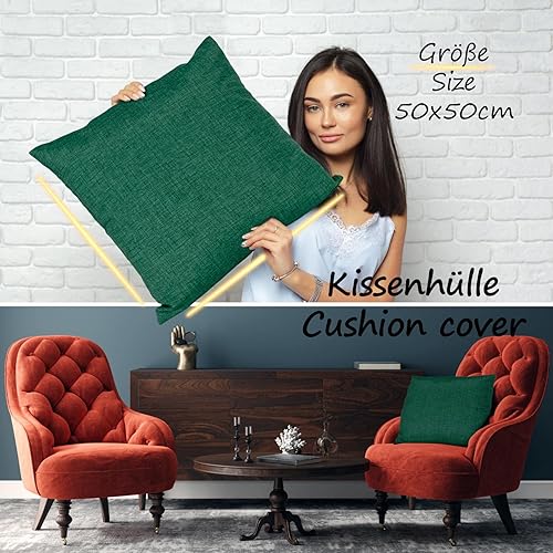 Housse de coussin décorative aspect lin Vert sapin 50 x 50 cm sans rembourrage