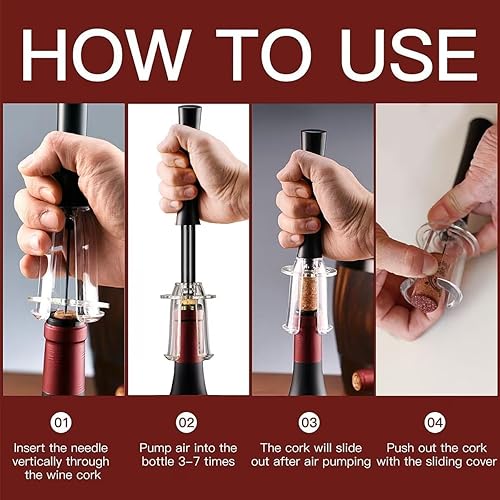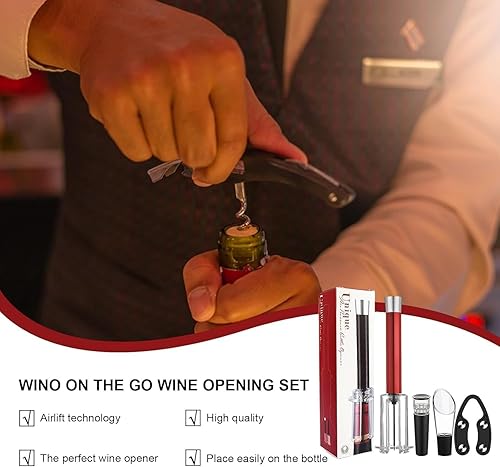 HUALEI-V Wino on The Go Kit d'ouverture de vin avec pompe à air comprimé et tire-bouchon facile à retirer avec poignée en alliage d'aluminium (rouge)