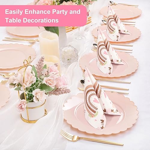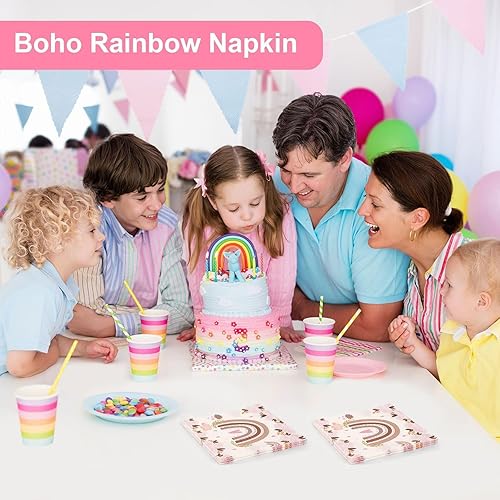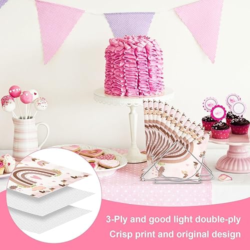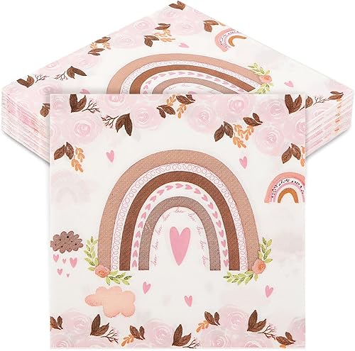 Papier Boho Serviettes, 40 Pièces 33 X 33cm Boho Arc En Ciel Serviettes de Table Fleurs Jetables Serviettes de Fête Boho Serviette Papier pour Baptême Fête Prénatale Anniversaire Enfant