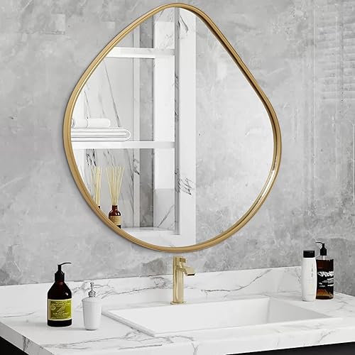 Petit miroir mural irrégulier avec cadre doré pour salle de bain, miroir rectangulaire moderne pour coiffeuse