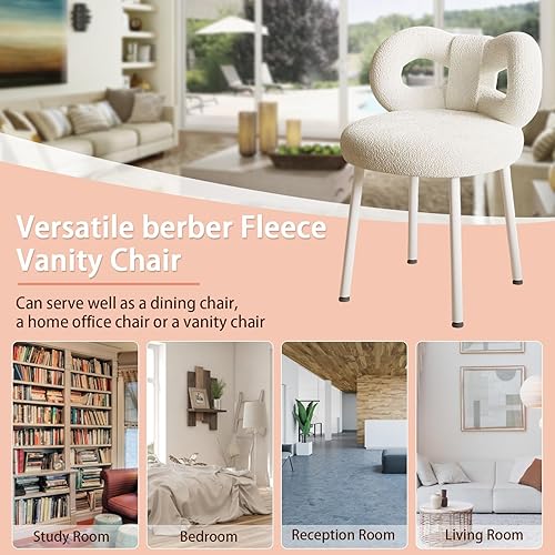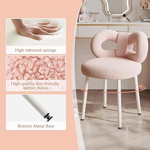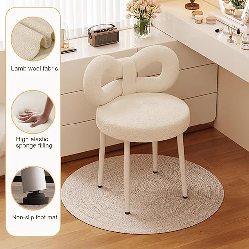 Karelwui Petit Tabouret de Coiffeuse avec Dossier Noeud Papillon, Chaise de Maquillage pour Chambre à Coucher, Femmes et Filles, Coussinets Pieds réglables, sans accodoirs Salle de Bain, Blanc