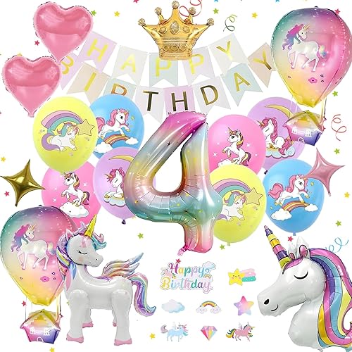 35 Pièces Ballon Aluminium Licorne, 4 Ans Decoration Anniversaire Licorne, Licorne Ballons Anniversaire 4 Ans, Décoration Anniv-ersaire Licorn Fille, Ballon Lic-orne Annivers, De-co Fete Cadeau