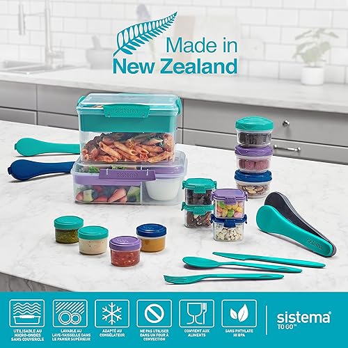 Sistema TO GO Snack ’n’ Nest Récipients de conservation alimentaire | 150 ml, 305 ml, 520 ml | Petits pots à goûter emboîtables | Sans BPA | Coloris assortis | 3 pièces