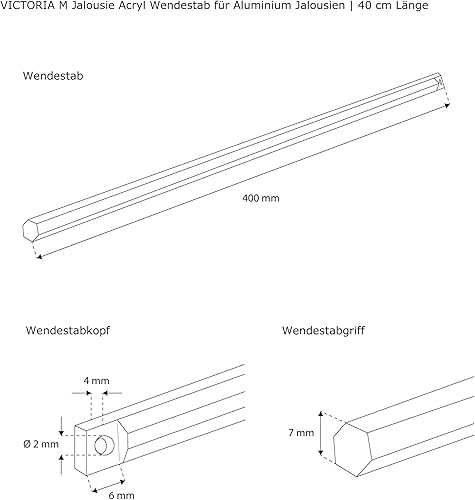 Victoria M. Tige réversible pour Store vénitien Standard, pièce de Rechange, en Acrylique Transparent, Stable, Longueur 90 cm