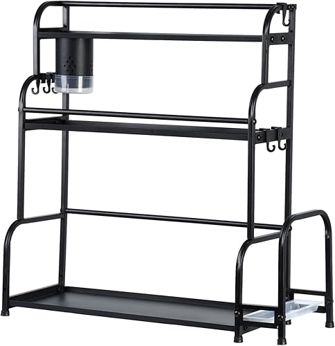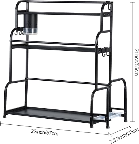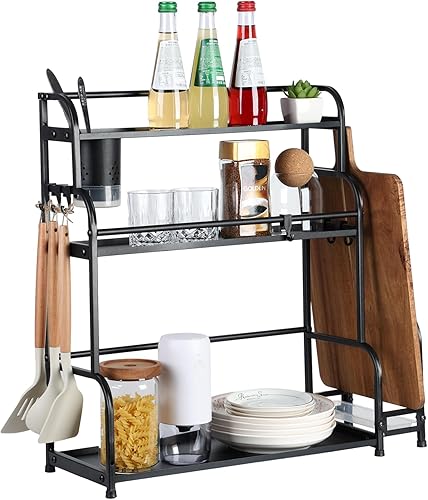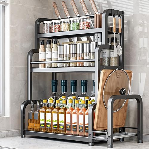 tinysiry Étagère à épices sur pied, 3 niveaux pour pots à épices avec crochets et porte-ustensiles, organiseur de cuisine en acier inoxydable pour cuisine