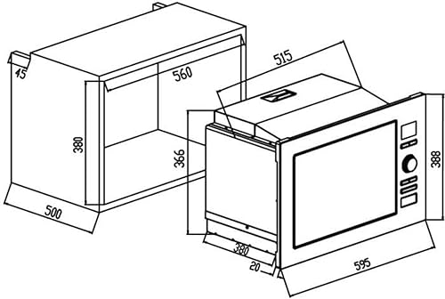 Micro-ondes grill encastrable CONTINENTAL EDISON CEMO25GEB2 Noir L59,5 x H38,8 x P40 cm 25L
