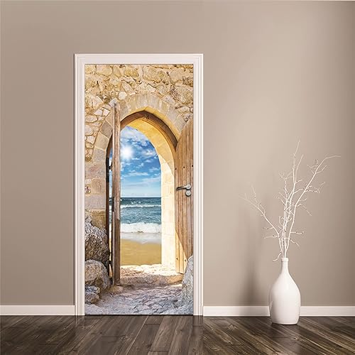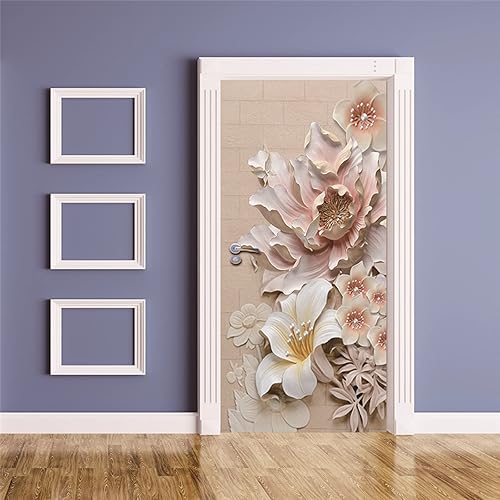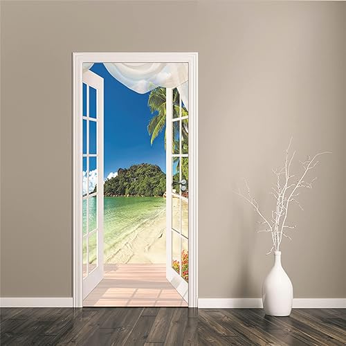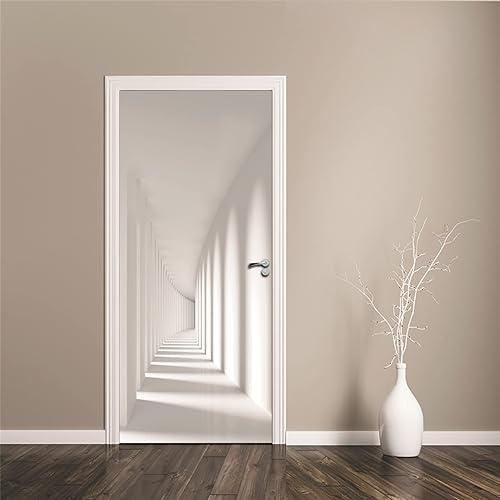 Autocollant de Porte en Bois Blanc Affiche de Porte Papier Peint de Porte Imperméable Papier Peint de Porte Amovible en Vinyle pour Portes Intérieures Salon Chambre À Coucher Salle de Bain(90x200cm)