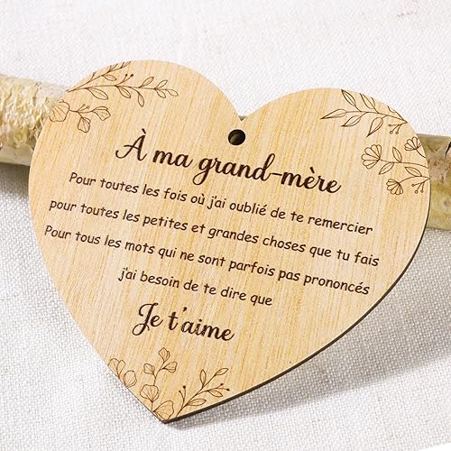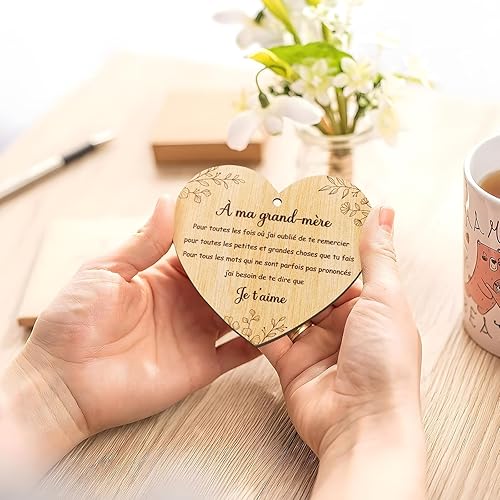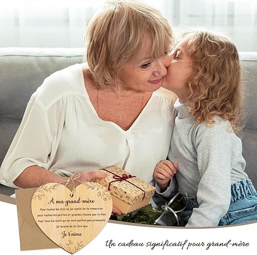 COLOFALLA Cadeau Mamie en Bois Cadeau Grand-Mère avec Enveloppe Accessoire Décoration Pendentif Carte Plaque en Bois pour Anniversaire Noël Fête des Grand-Mères