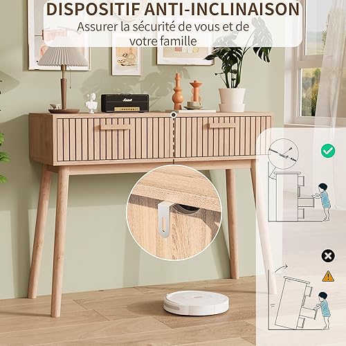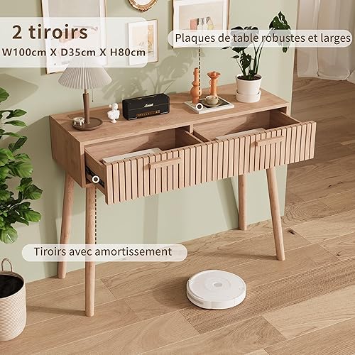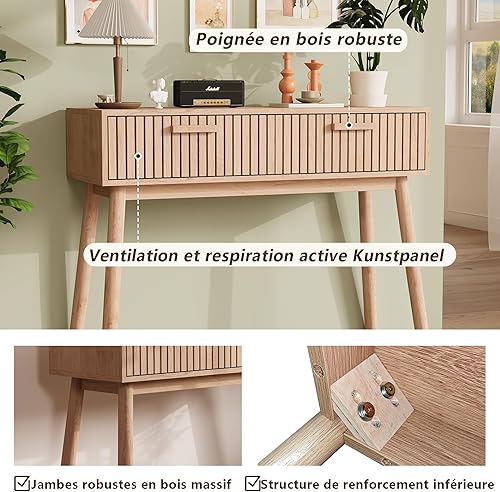 Table Console avec Rangement 100 × 35 × 80 cm ,Console Table avec 2 Tiroir Console Bois Massif Table D'appoint Buffet Console Entree avec Tiroir Table de Canapé pour EntréE,Salon,Salle à Manger,Chambr