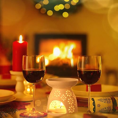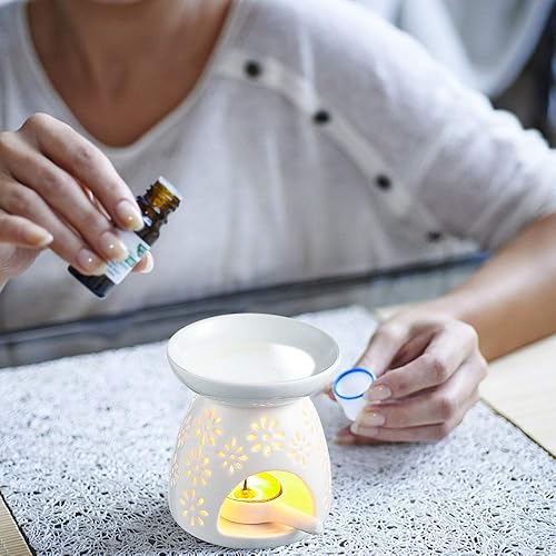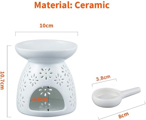 CMXING Brûleur à Huile Céramique Parfum Lampe Aromathérapie - Bougeoir Vitrage Creux Petal Avec Cuillère - Blanc et Yankee (Fleur)