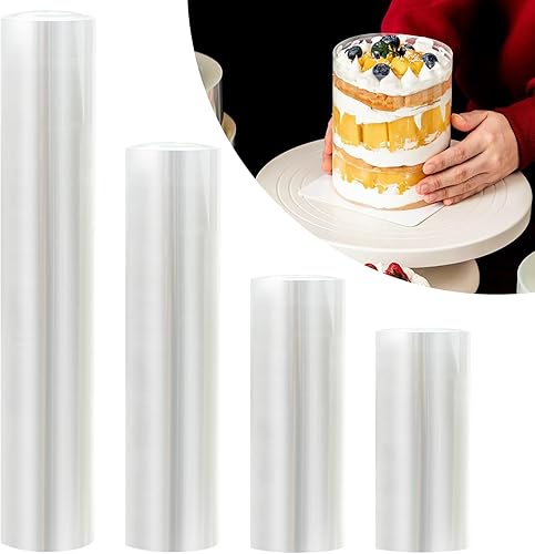 Colliers à Gâteau 4 Tailles (8/10/15/20cm) - Rodoide Transparent Patisserie en Bordure Gâteau Réutilisable - Acétate Rigide pour Mousse Décoration 10m par Rouleau