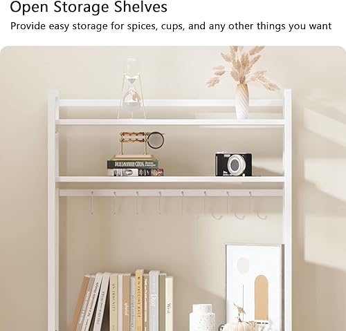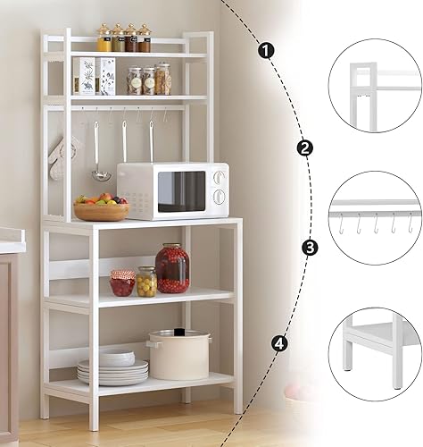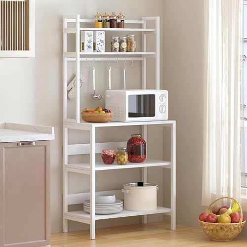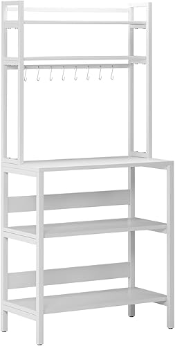 SogesHome Étagère de Cuisine à 5 Niveaux Étagère à Micro-Ondes avec 8 Crochets pour la Vaisselle Étagère de Rangement en Bois et Structure en Acier 80 x 40 cm