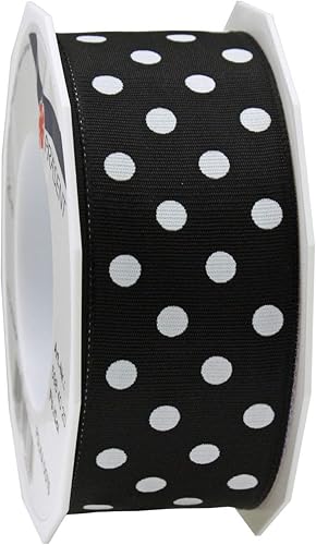 PRÄSENT Ruban Taffetas à Pois Noir/Blanc 40 mm-20