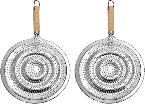 Housoutil 2Pcs Plaque de Diffuseur de Chaleur pour Cuisinière à Gaz Cuisinière Électrique Plaque de Protection de La Flamme avec Poignée en Bois Diffuseur de Chaleur de Table de Cuisson