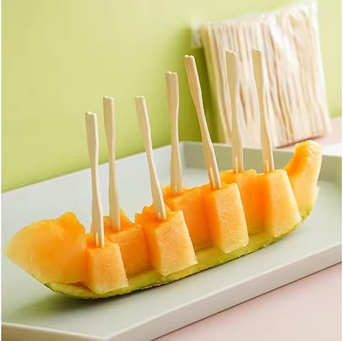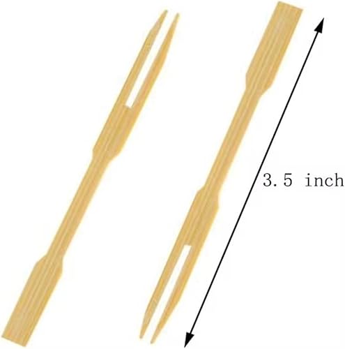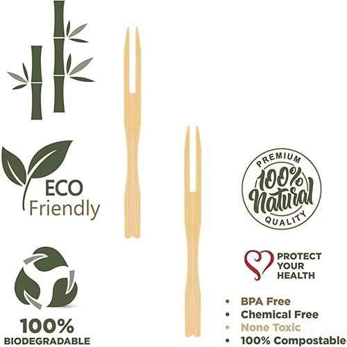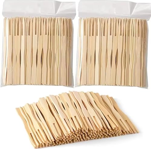 WHISPERING FANTASY Lot de 100 fourchettes à fruits en bambou de qualité supérieure + pince de cuisine