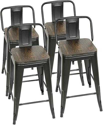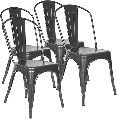 RELOVE Lot de 4 Chaises de Salle à Manger Empilables en Métal Style Industriel Vintage, Convient pour Une Utilisation Intérieure et Extérieure, Chaise de Jardin,85 * 45 * 45cm