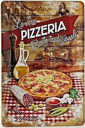 Geroclonup Plaque en métal vintage pour pizzéria, pizzeria, restaurant, italien, sans appétit, cuisine, cuisine, ferme, décoration de cuisine, amusant, cadeau de pendaison de crémaillère, 30 x 40 cm,