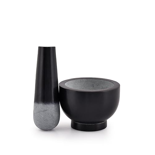 Kaizen Casa Mortier et pilon en pierre pour moudre des épices, pesto en poudre, purée d'herbes, pilules, taille standard (9,52 cm x 6,98 cm, mortier 12,7 cm x 3,81 cm)