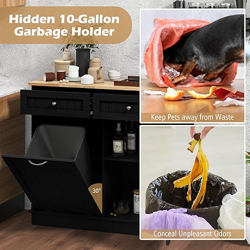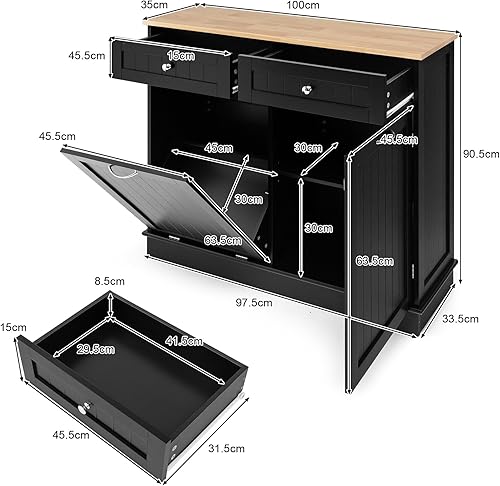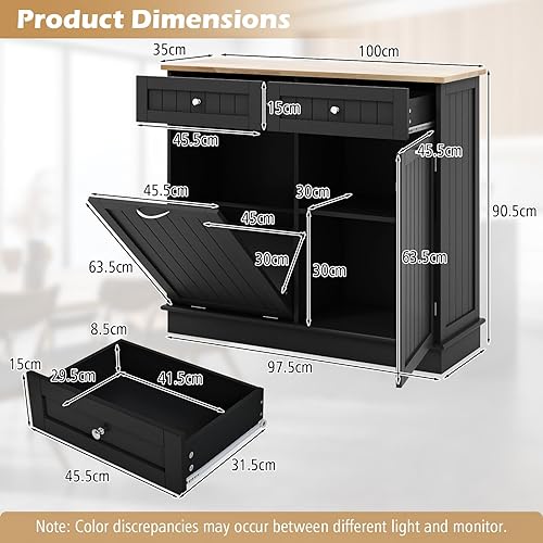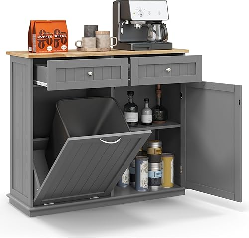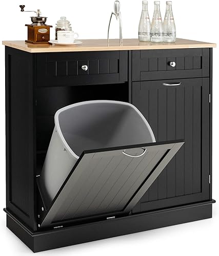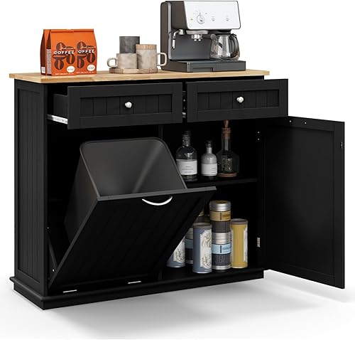 GIANTEX Meuble de Cuisine Rangement, Buffet de Cuisine Vaisselier avec 2 Tiroirs & Armoire à Porte, Placard Commode à Plateau pour Salon Buanderie Toilette, Convient à Poubelle (Non Inclus) (Blanc)