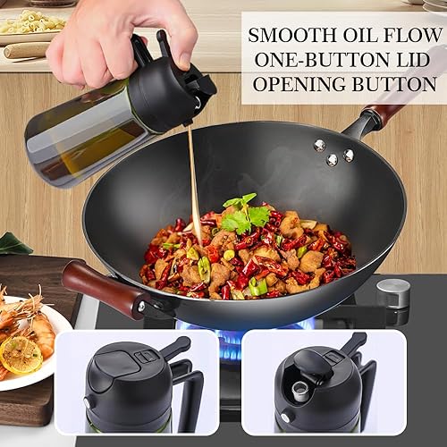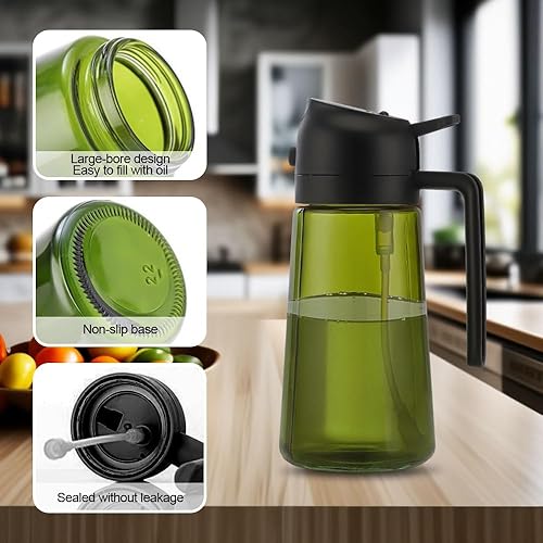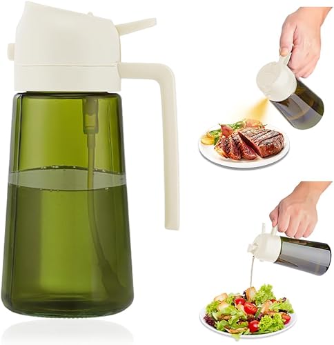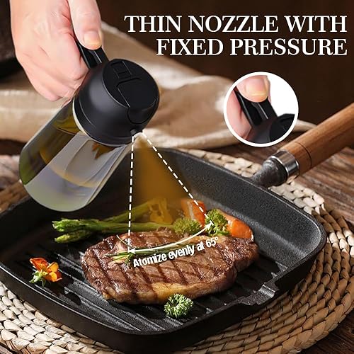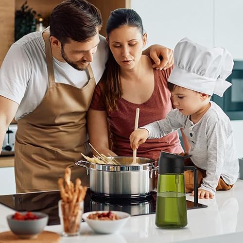 YZROHYI 470 ML Spray Huile Cuisine 2 en 1,Pulverisateur Huile en Verre,Vaporisateur Huile Air Fryer,Cooking Oil Spray Bottle,Bouteille Huile de Cuisson,Distributeur Huile D'Olive et Vinaigre - Noir