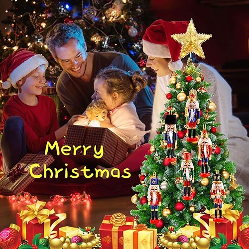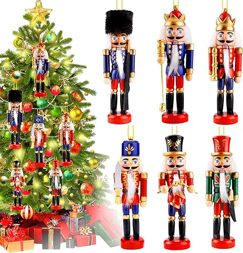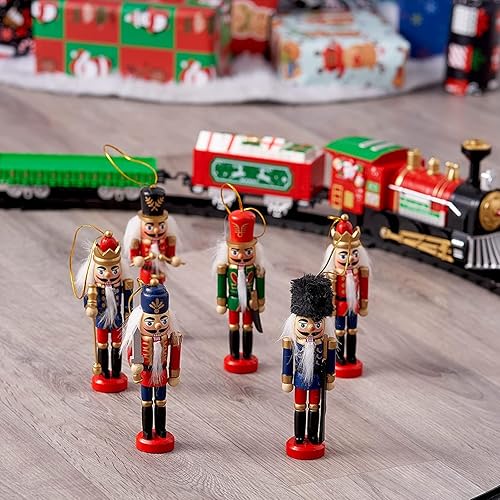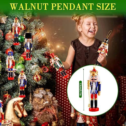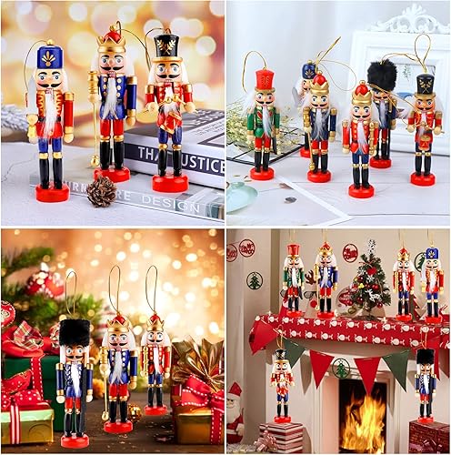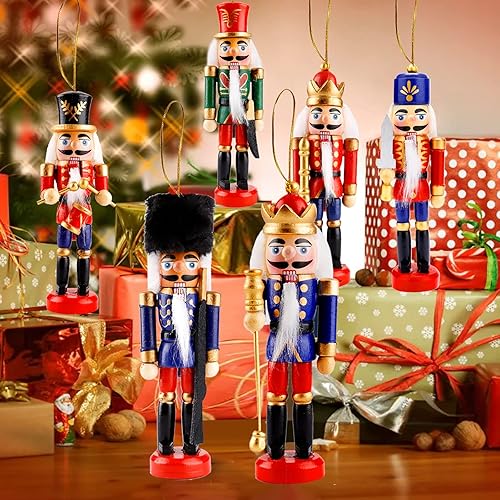 ZZXLOPEZ Casse-Noisette en Bois, 6 Pcs Casse Noisette en Noel, 13cm Casse Noisette Soldat Roi Figurine Classique pour la décoration Traditionnelle de l'arbre de Noël à Suspendre, Décor De Table