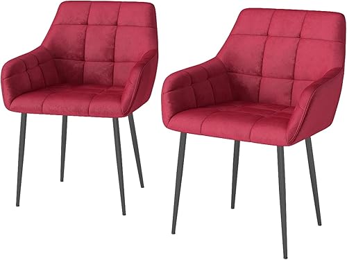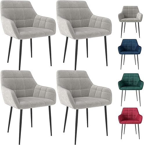 Eccellensedie Lot de 2 chaises de salle à manger, cuisine, modernes, confortables, rembourrées, en velours, avec accoudoirs et pieds en métal, gris