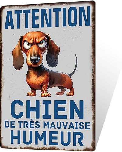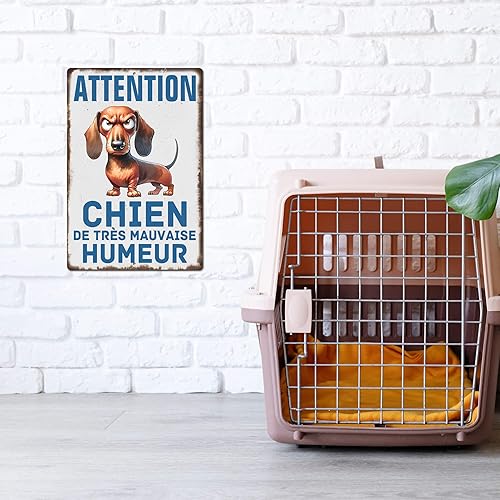 Putuo Decor Plaque Murale Métal – Panneau Humour « Attention Chien de Très Mauvaise Humeur » – Signalétique Amusante pour Maison, Jardin, Porte, Clôture