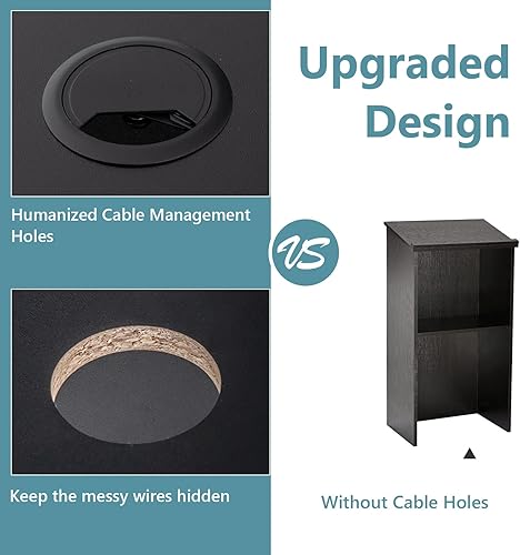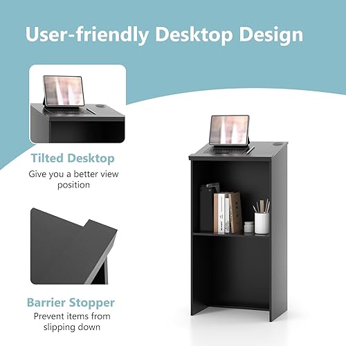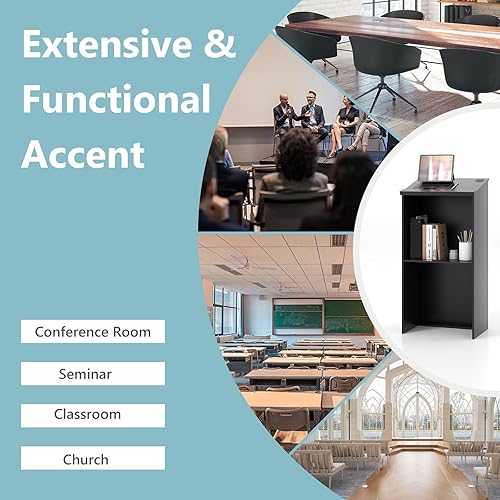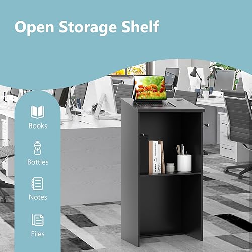 LIFEZEAL Pupitre de Conférence en Bois, Podium de Présentation avec Passage de Câble, Table Haute pour Église, Bureau, Séminaire, 58 x 40 x 116,5 CM, Noir