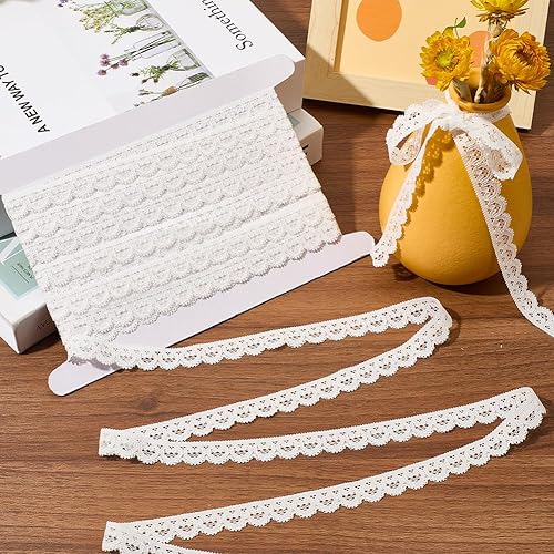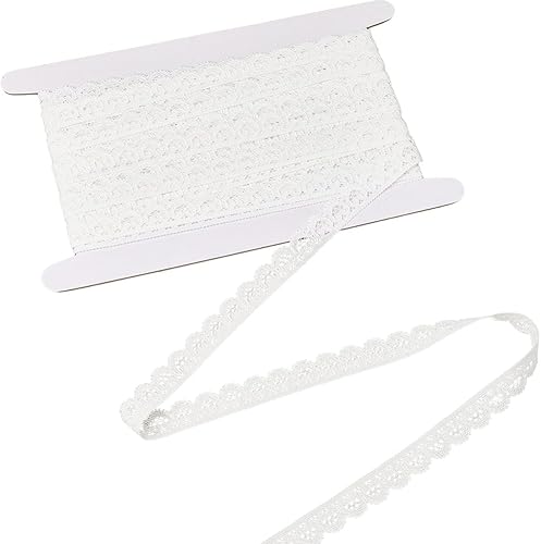 CABODYALS Ruban en Dentelle Extensible Blanc Chinlon de 9.14 m Élastique Ondulé Bordure Florale Œillet Crochet Broderie pour la Couture la Confection de Vêtements Embellissement de Vêtements Fournitur