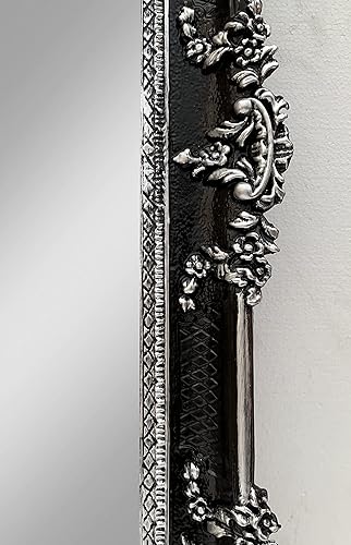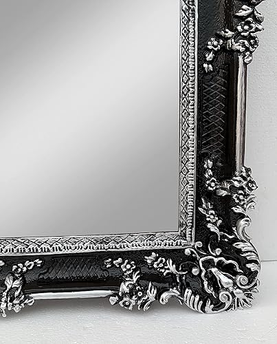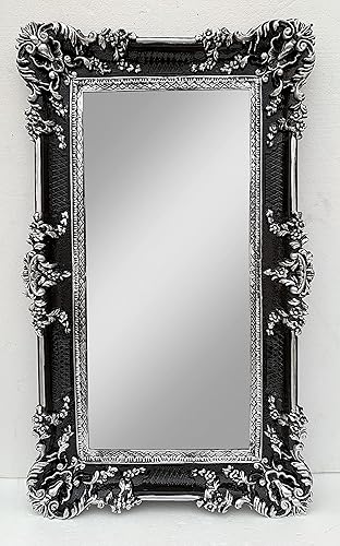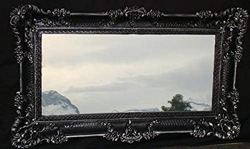 Miroir mural, style baroque, antique, noir, argenté, 97 x 57 cm, rectangulaire, pour coiffeur, décoration murale, fabriqué en Italie