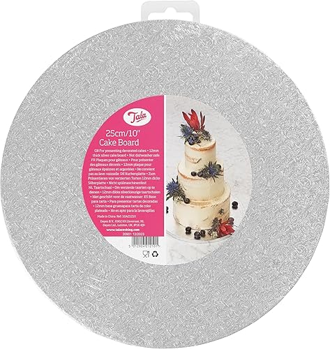 Tala Plateau à Gâteau Carré 30cm/12', Ultra Résistant avec une Épaisseur de 12mm, Base en Feuille d'Argent, Idéal pour les Gâteaux Lourds
