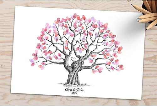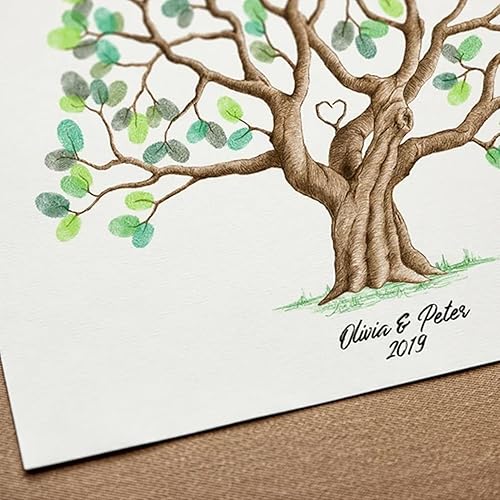 Générique Arbre À Empreinte Mariage | Livre d'or Alternatif en Toile avec Arbre À Empreintes Digitales | Mariage D’Arbre D’Empreinte Digitale | Décoration Murale pour Anniversaire, Mariages, Diplôme