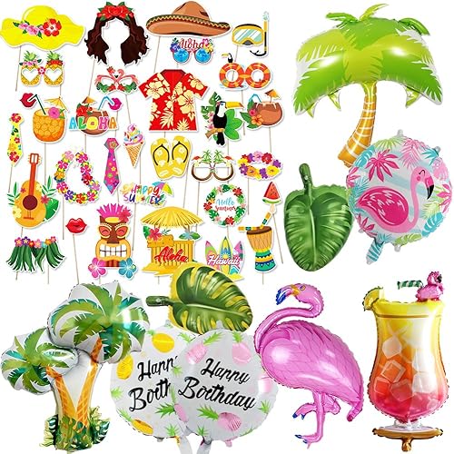 Décoration Fête Tropicale Kit Hawaii Flamant Rose Ballons Aluminium Cocktail Accessoires Photobooth Été Anniversaire Enfant Piscine Mariage Soirée Luau Vacances Thème Plage