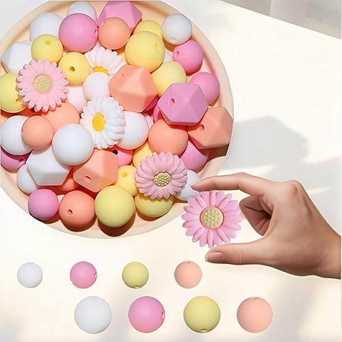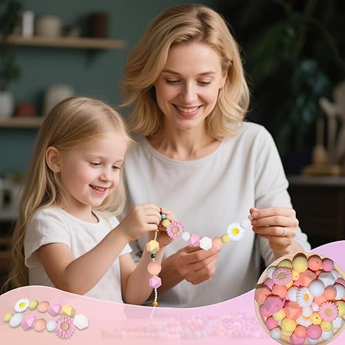 Lot de 100 perles en silicone en forme de fleur pour bricolage, marguerites, 4 couleurs, pour porte-clés, bracelets, colliers, décorations