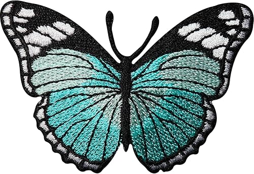 Écusson brodé à repasser ou à coudre Motif papillon Vert turquoise