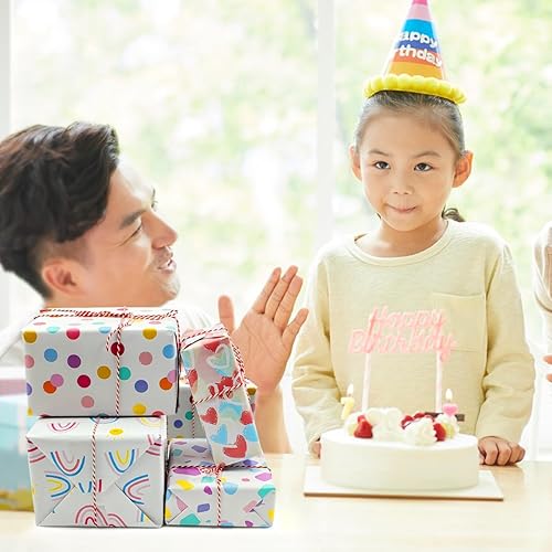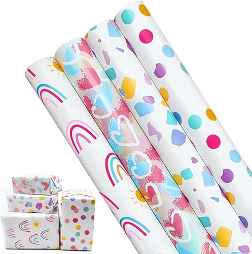 4 rouleaux de papier d'emballage cadeau de 43 cm x 3 m, rouleau de papier d'emballage d'anniversaire, adapté pour anniversaire, fête, mariage, fête prénatale, décorations de cadeaux de festival