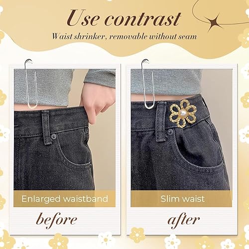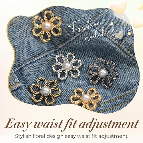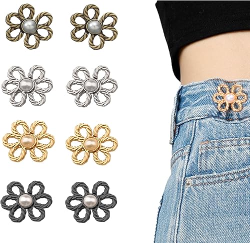 Pince Pour Pantalon Trop Large, boutons à fleurs, épingles pour jeans amples, boucles de taille réglables, sans couture, serre-taille réutilisable (8pcs)