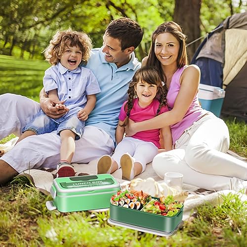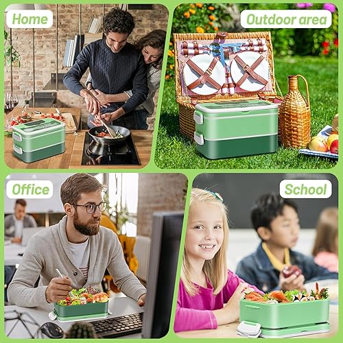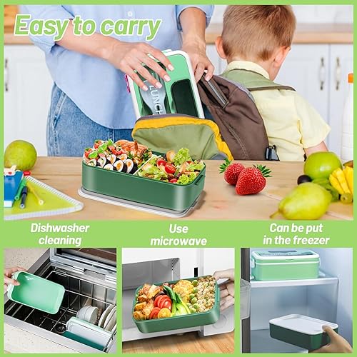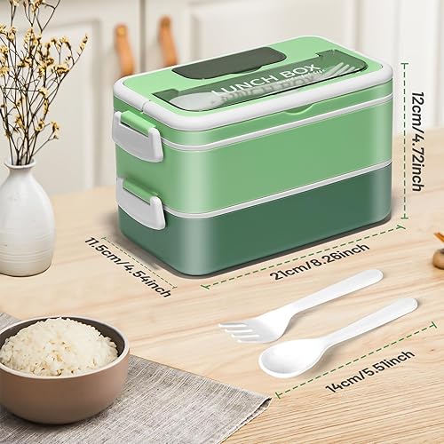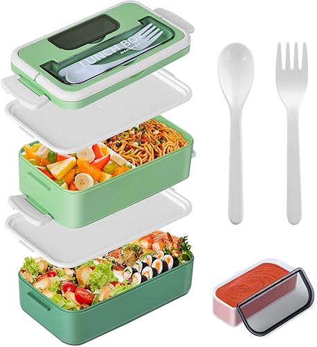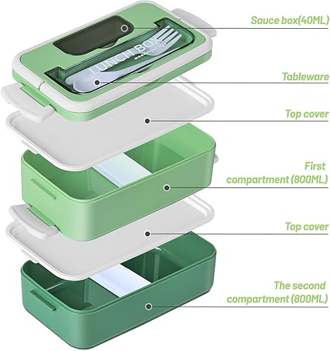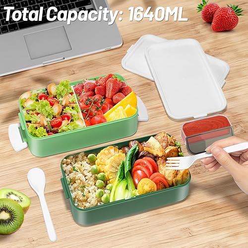 Anykuu 1600 ML, Bento Lunch Box Double Couche avec Cuillère, Fourchette et 3 compartiments Enfant Anti-Fuite Écologique Hermétique, Convient au Micro-ondes au Lave-vaisselle