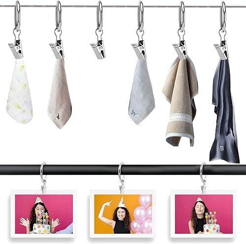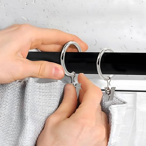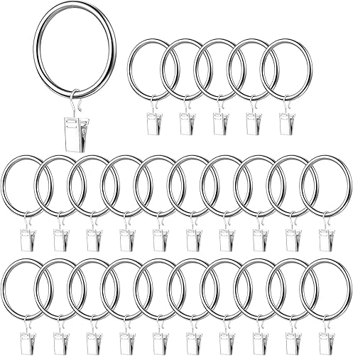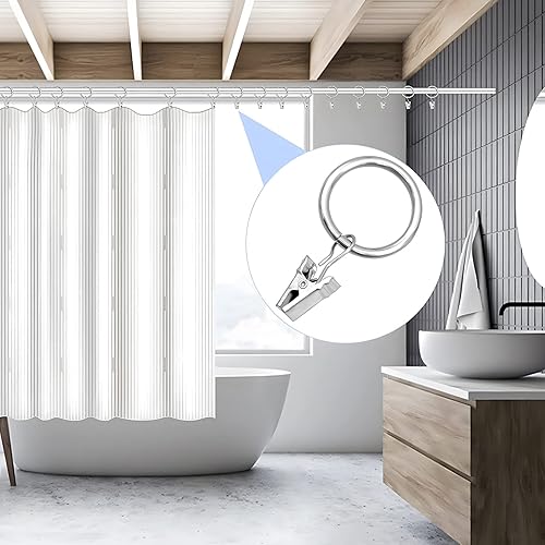 OUYANKA 30pcs Anneaux de Suspension 25mm avec Pinces en Acier Inoxydable pour Rideaux de Douche/Français/Draperies/Décoration