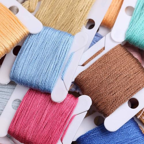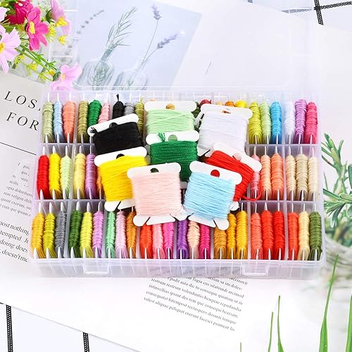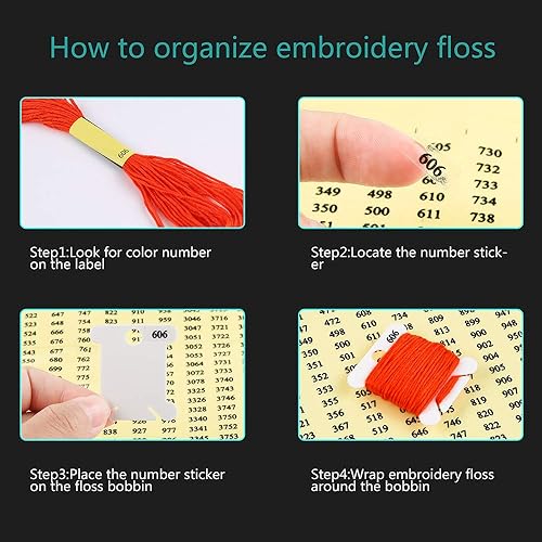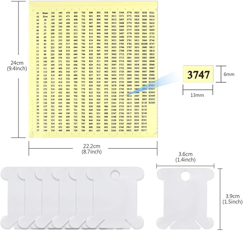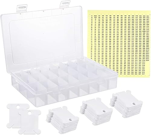 Caydo Rangement Fil Broderie, 124 Bobines de Fil à Broder en Plastique Blanc avec Boîte de Rangement et 552 Autocollants Numérotés