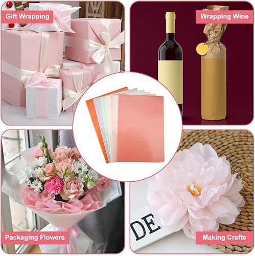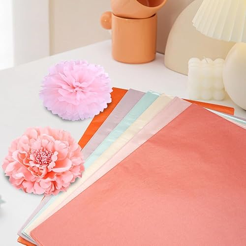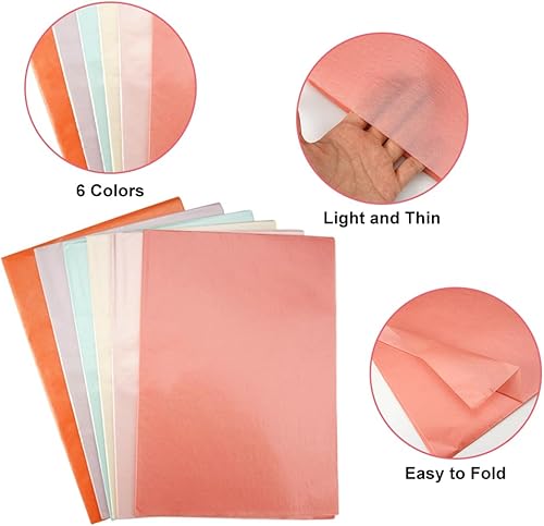 Lot de 60 Feuilles Papier Soie Coloré Emballage, 35 X 50 cm, 6 Couleurs Feuilles de Soie pour Décoration de Mariage, Fleurs en Papier, Pompon, Artisanat Bricolage, Sacs Cadeaux, Noël