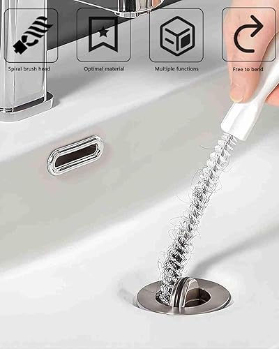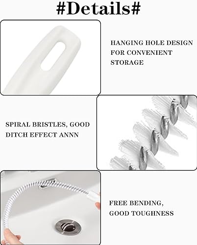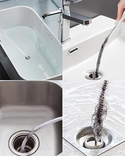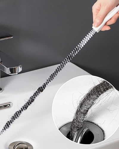 LOZTBUE Brosse d'évacuation flexible 4 pièces, nettoyeur d'évacuation, nettoyeur de tuyaux pour salle de bain et cuisine, élimine les cheveux longs, 45 cm