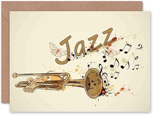 Wee Blue Coo Greeting Jazz Theme Trumpet Typograph Music Gift Sealed Greeting Card Plus Envelope Blank inside le jazz La musique Cadeau